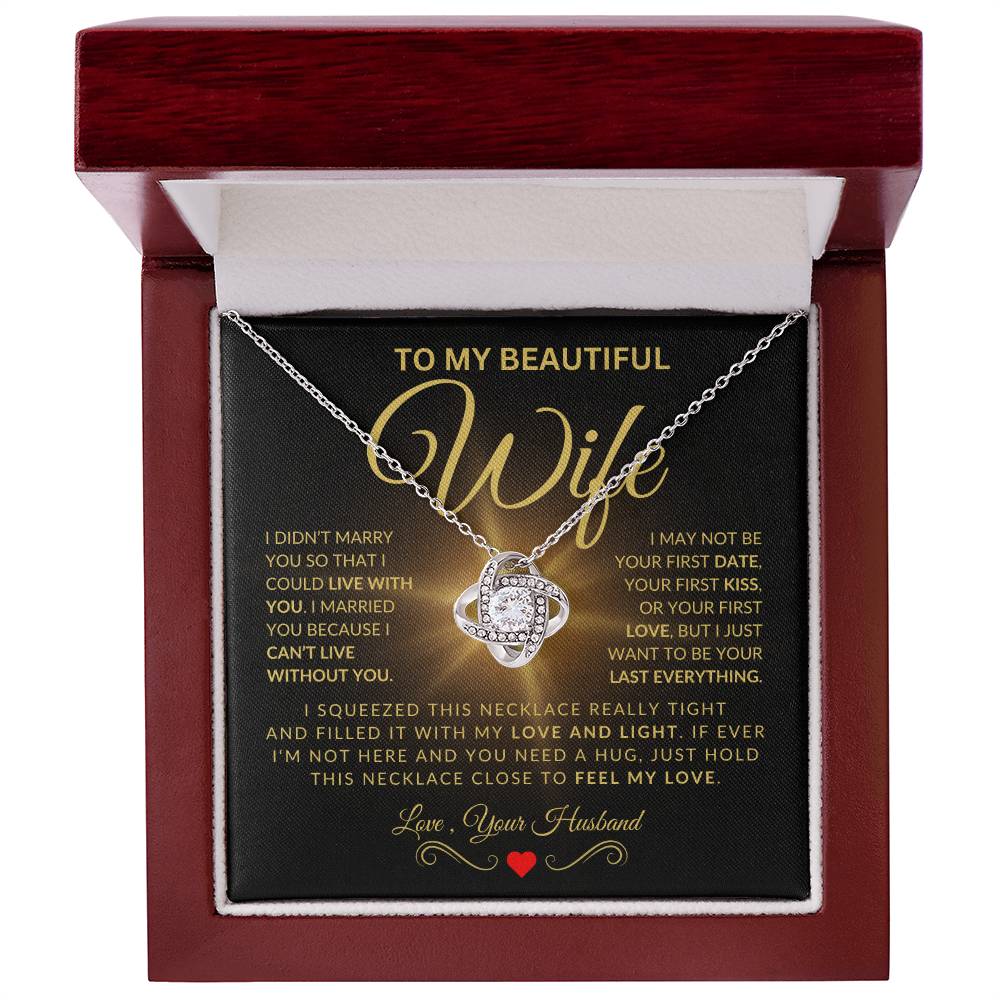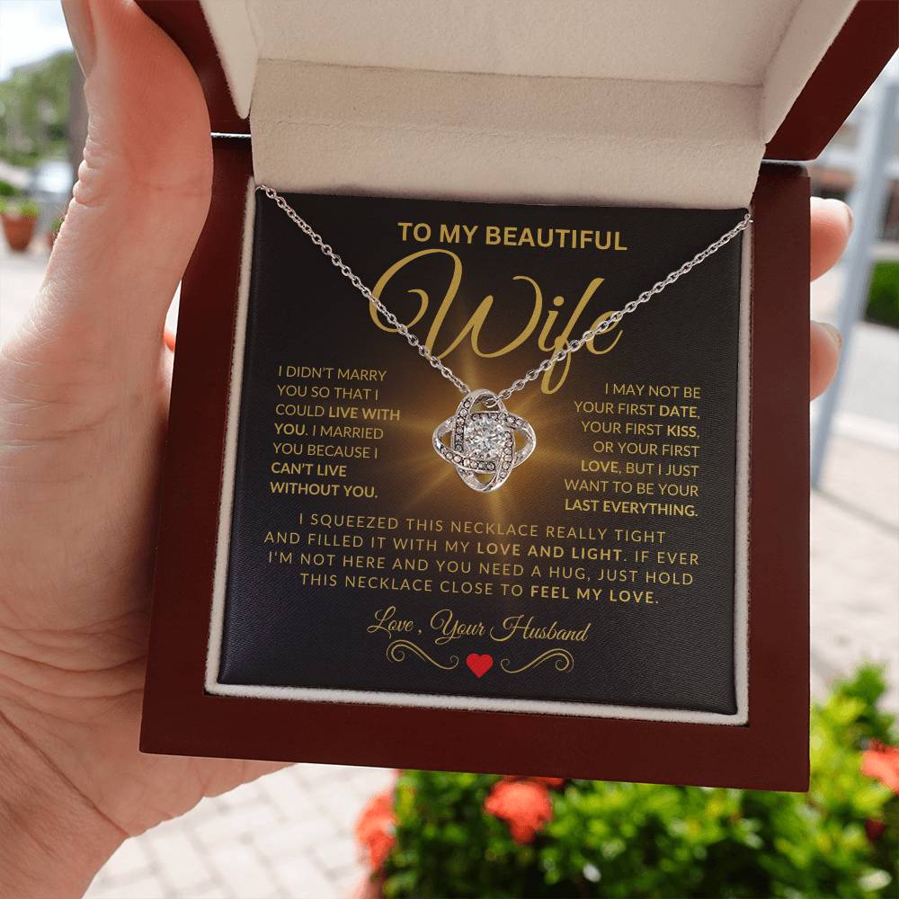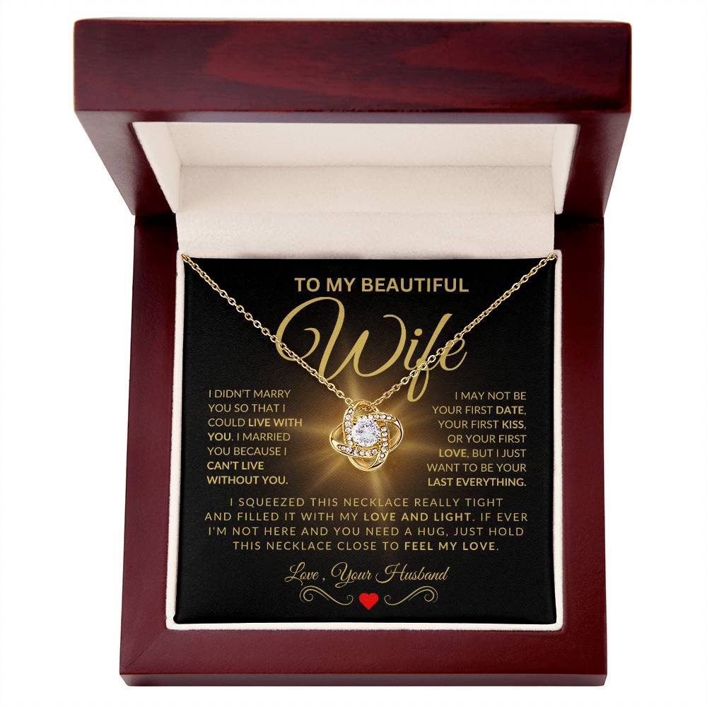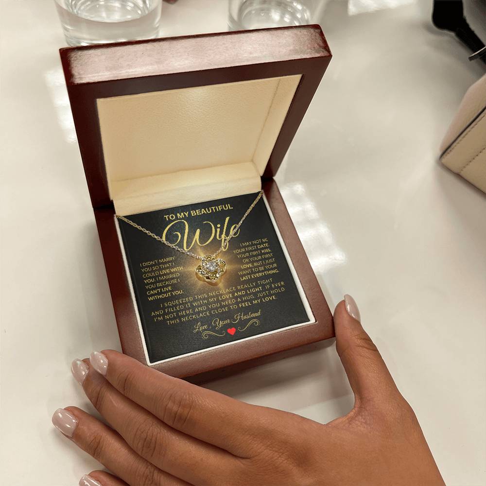 The Gold Love Knot Necklace isn't just a piece of jewelry; its a declaration of love. Each twist and turn represents enduring commitment, designed to remind your wife every day just how much she means to you. It’s not just about adornment; its about keeping your love close to her heart wherever she goes.