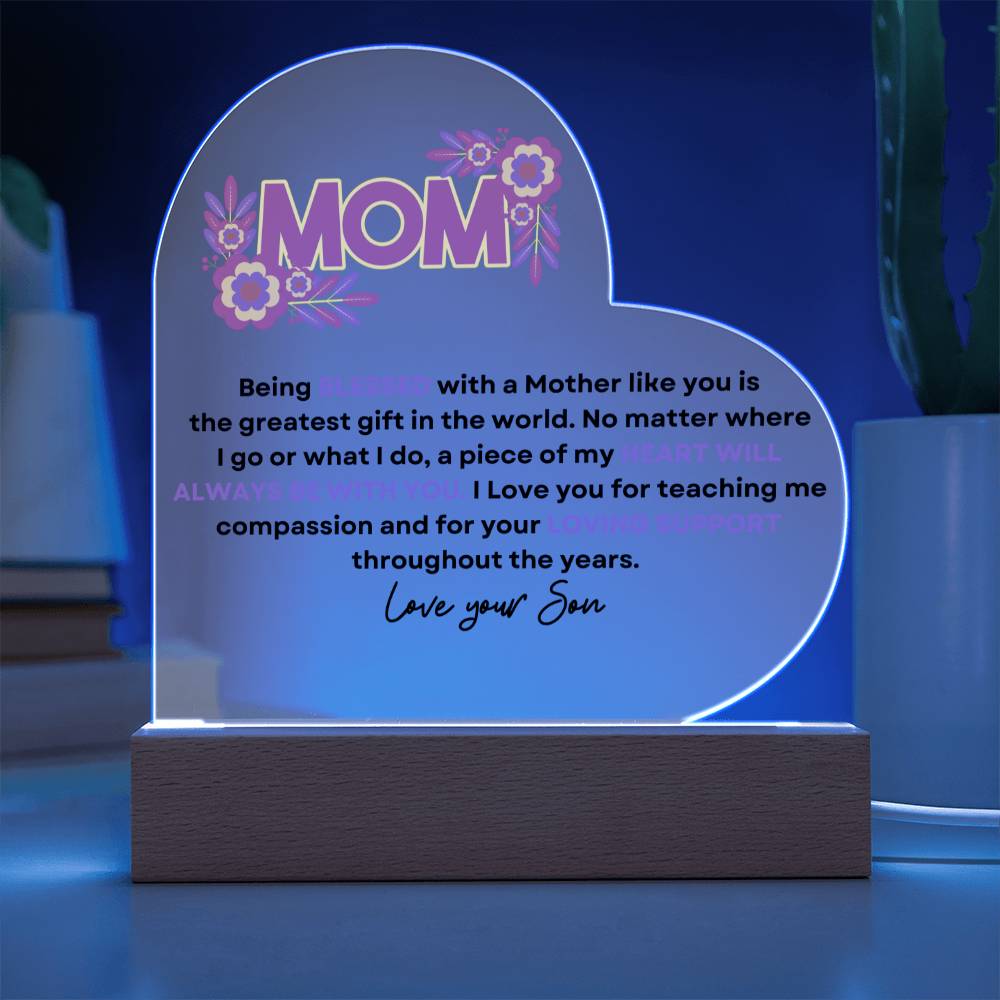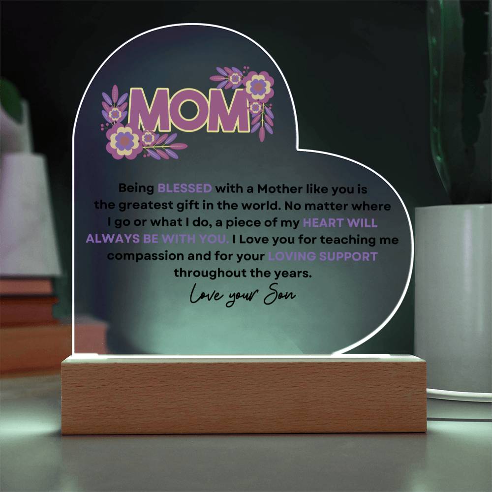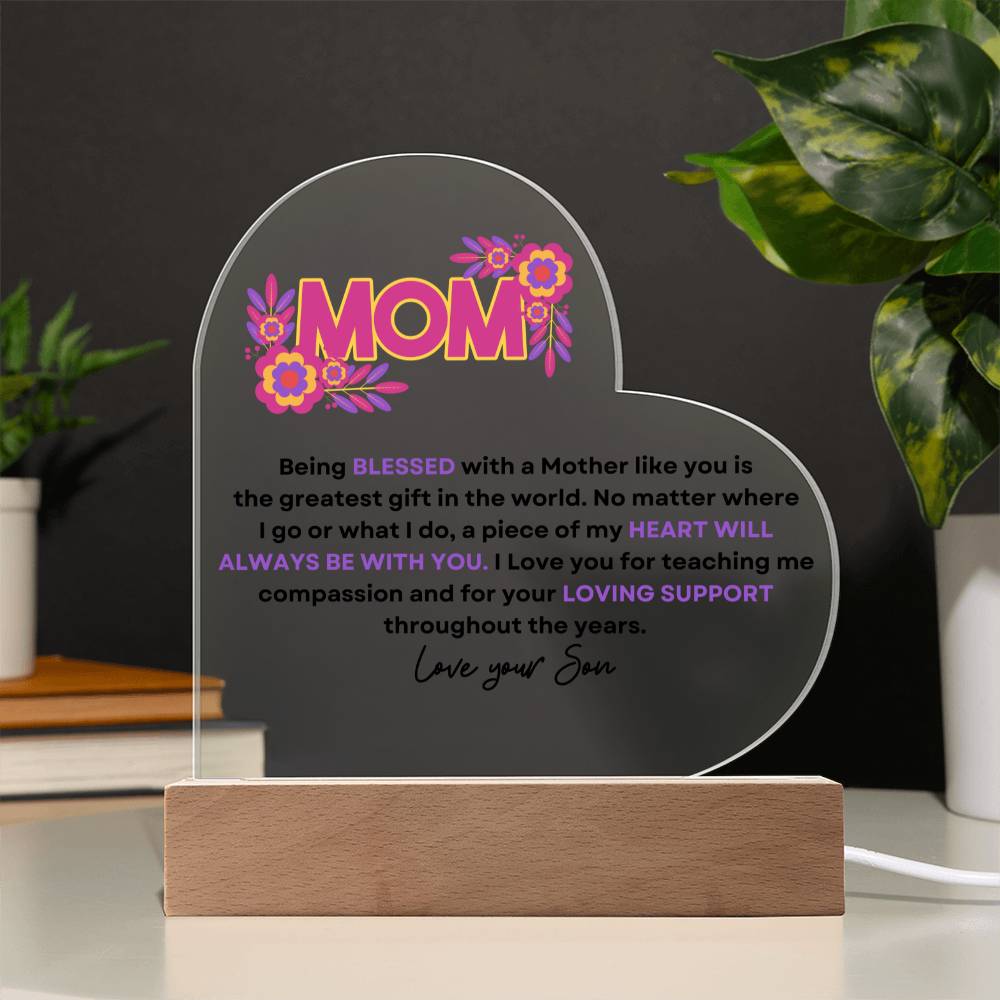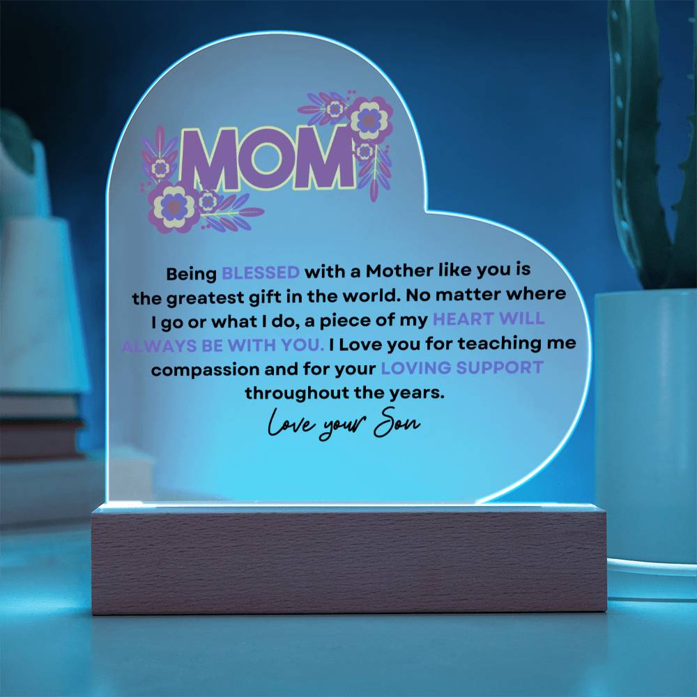"I was struggling to find something unique for mom since she literally has everything. This heart acrylic was a winner! Its not just another gift; its a daily reminder of our bond. She keeps it by her window and says the sunlight through it reminds her of me."