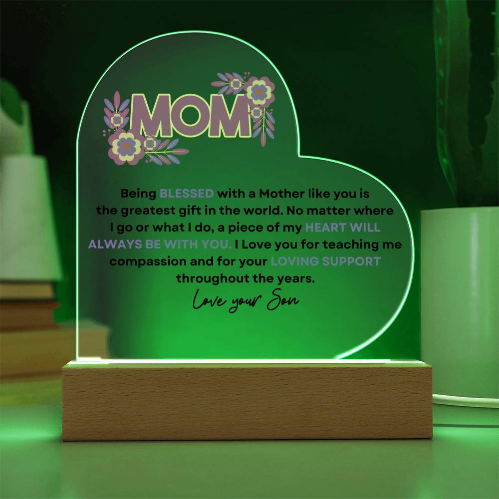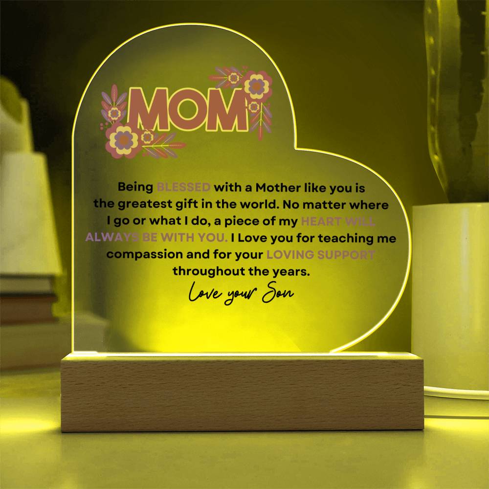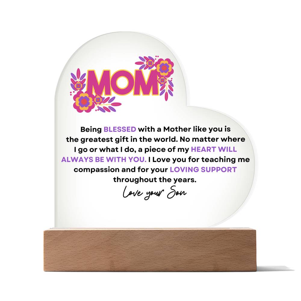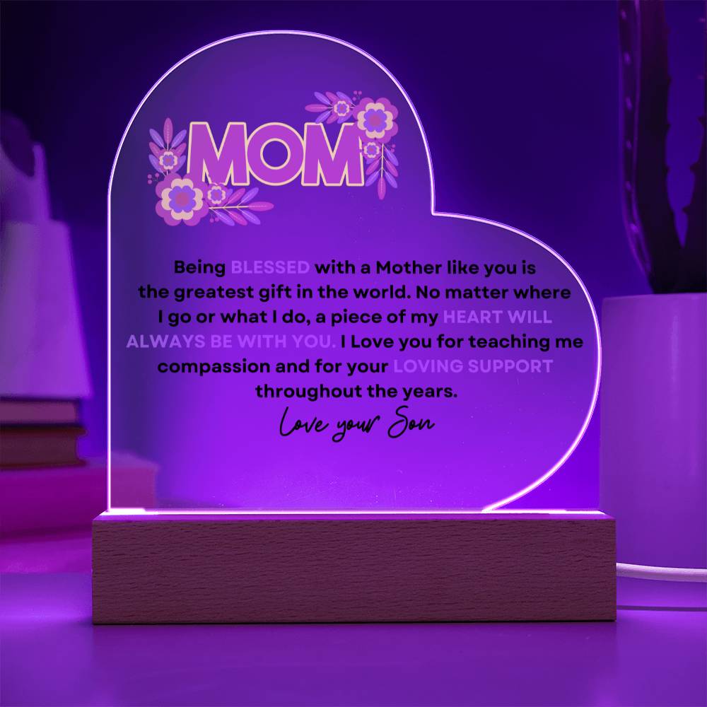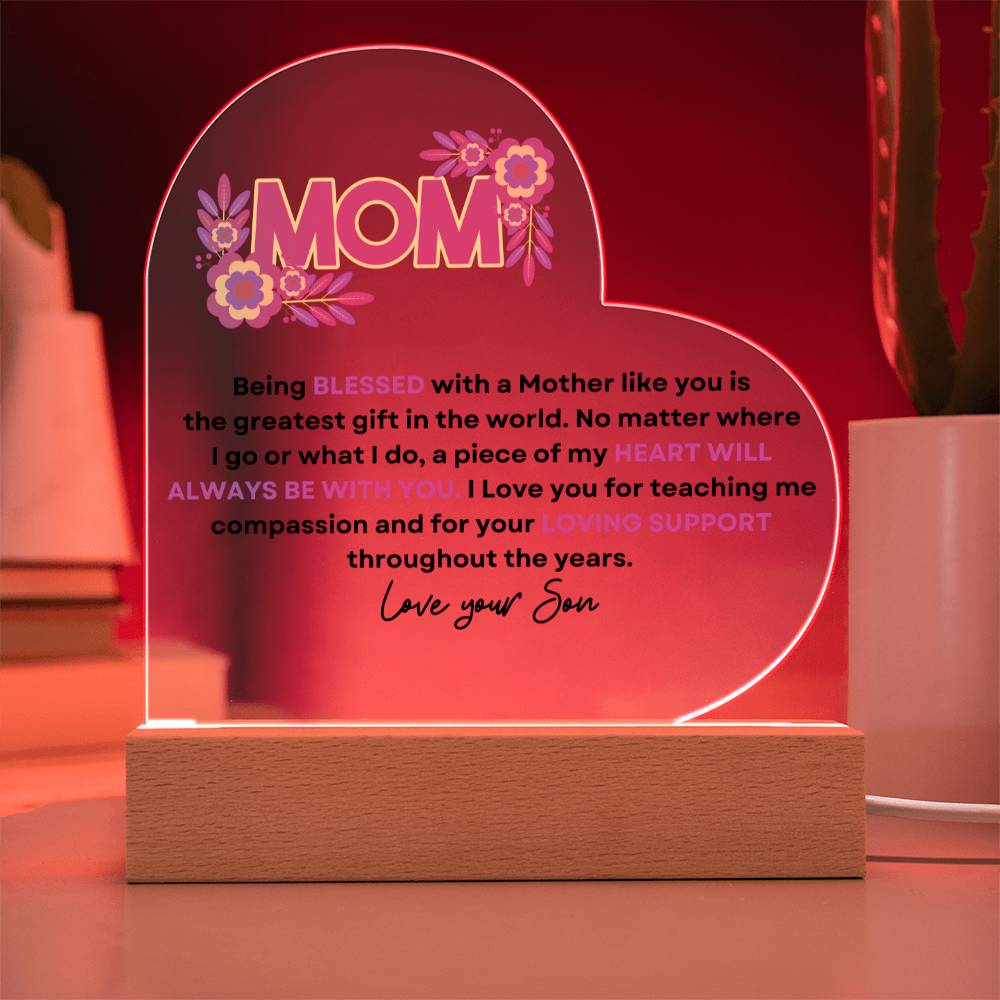 "I was struggling to find something unique for mom since she literally has everything. This heart acrylic was a winner! Its not just another gift; its a daily reminder of our bond. She keeps it by her window and says the sunlight through it reminds her of me."