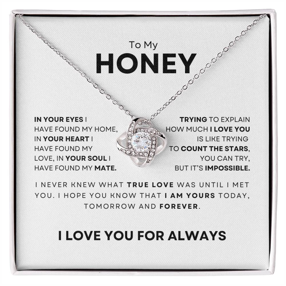 Imagine her reaction receiving this beautiful Love Knot Necklace. Representing an unbreakable bond between two souls, this piece features a beautiful pendant embellished with premium cubic zirconia crystals. Surprise your loved one with this gorgeous gift today!